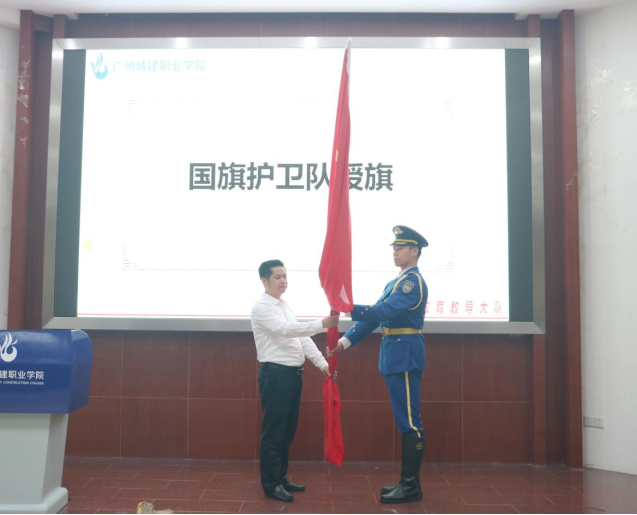 儀式上,孔練光為即將出征參加廣東省高校國旗護衛(wèi)隊決賽的國旗護衛(wèi)隊授旗,并作動員講話。他代表學校對國旗護衛(wèi)隊近年來取得的成績給予充分肯定,對全體隊員不怕苦、不怕累,克服困難、刻苦訓練的精神提出表揚。他強調(diào),全體隊員要以護衛(wèi)國旗為使命,以弘揚愛國主義精神為己任,崇尚榮譽、珍惜榮譽,在比賽中以“永爭第一”的昂揚斗志和飽滿的精神狀態(tài)展示城建學子的精神風貌。