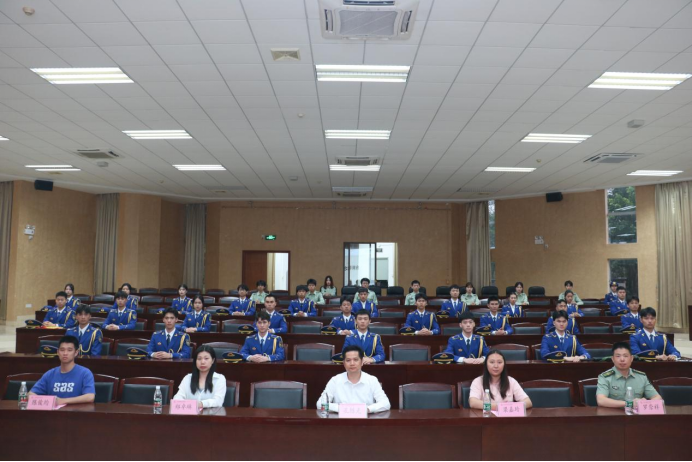 4月21日下午,我校在建工機電樓101報告廳舉行廣東省高校國旗護衛(wèi)隊決賽出征儀式。校長助理、武裝部部長孔練光,國旗護衛(wèi)隊指導老師羅崇祥,學生處思政教育中心主任鄭卓琳和輔導員代表梁嘉玲、陳俊均及全體參賽代表出席本次大會。