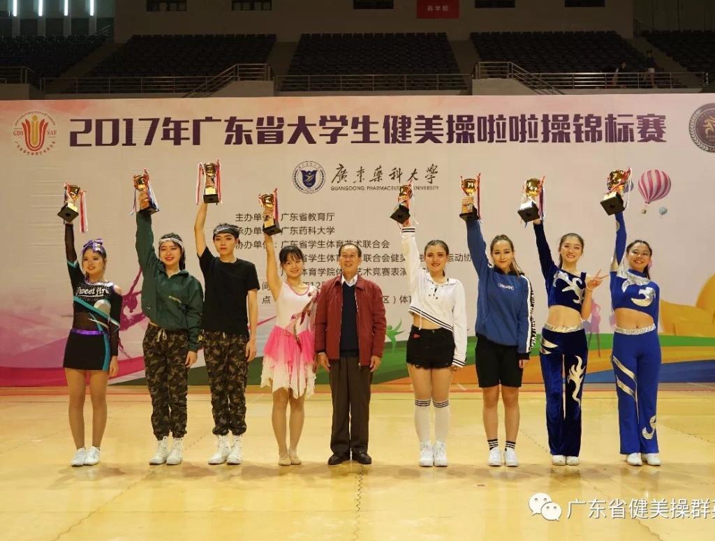 由廣東省教育廳主辦的2017年廣東省大學(xué)生健美操啦啦操錦標(biāo)賽于12月2日至3日在廣東藥科大學(xué)舉行。本次決賽匯聚了廣東省56所高校1500多名參賽選手。我校派出隊員參加的七個項目均獲得榮譽,其中“輕器械健身操自選動作”項目勇奪冠軍,并獲得團體總分排名第二的好成績。