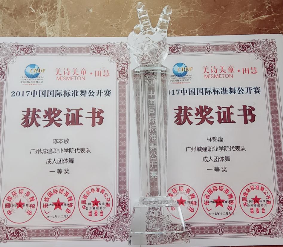 12月9日,由廣東省國(guó)際標(biāo)準(zhǔn)舞協(xié)會(huì)主辦,中山市星力文化傳播有限公司承辦的2017中國(guó)國(guó)際標(biāo)準(zhǔn)舞公開(kāi)賽在中山市興中體育館舉行。我校拉丁舞蹈隊(duì)在指導(dǎo)老師歐敏的帶領(lǐng)下參加2017中國(guó)國(guó)際標(biāo)準(zhǔn)舞公開(kāi)賽并獲成人團(tuán)體舞一等獎(jiǎng)。