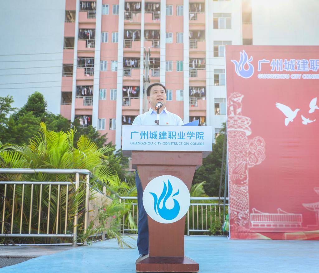蔣新華校長首先代表學(xué)校全體師生員工向2019級新生加入城建大家庭表示熱烈的歡迎,向辛勤軍訓(xùn)的教官們表示衷心的感謝!他充分肯定了同學(xué)們守紀律、講規(guī)矩、重團隊、求上進的軍訓(xùn)成果,并向大家介紹了近幾年來我校學(xué)生通過辛勤學(xué)習(xí)和拼搏奮斗,在各種競賽中所取得的優(yōu)異成績,以此勉勵廣大新生保持激情和活力,承接光榮使命,在新的學(xué)習(xí)環(huán)境中,創(chuàng)造屬于自己的精彩。