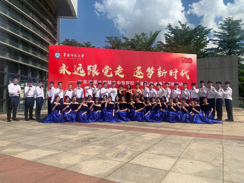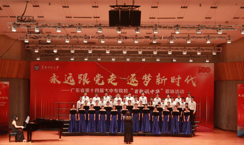 自接到廣東省教育廳《關(guān)于舉辦“永遠跟黨走 筑夢新時代-----廣東省第十四屆大中專院校‘百歌頌中華’歌詠活動”的通知》以來,學校團委積極組織動員,推選我校優(yōu)秀教師和藝術(shù)團合唱隊參賽,其中合唱組由張恩茂、胡雪婷、陳明干三位老師擔任指導老師、梁珂瑜老師擔任鋼琴伴奏。