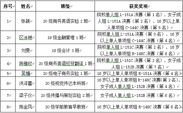 在學(xué)校團委的支持和指導(dǎo)下,我校體育舞蹈隊在領(lǐng)隊陳詩琪的帶領(lǐng)下參加比賽,9名運動員參加了13個項目的競爭。前期運動隊克服疫情造成的困難,充分利用課余時間、假期留校集訓(xùn)等方式全力備戰(zhàn)比賽。雖然是首次參賽,經(jīng)驗不足,但運動員們充分發(fā)揚不怕困難、敢于挑戰(zhàn)的精神,所參加的13個項目中均取得前八名的優(yōu)異成績。