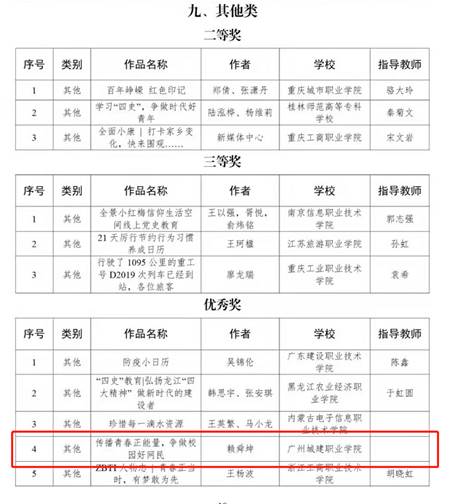 近日,教育部網(wǎng)站公示了第五屆“全國大學生網(wǎng)絡文化節(jié)”遴選結果,其中,“全國大學生網(wǎng)絡文化節(jié)”名單共入選47項廣東省高校作品,我校賴舜坤同學的作品《傳播青春正能量,爭做校園好網(wǎng)民》榮獲其他類作品優(yōu)秀獎。