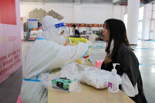 我校以學(xué)院、班級為單位,分地點(diǎn)、分時段、分批次有序進(jìn)行核酸檢測,所有待檢測的師生按照要求佩戴口罩,進(jìn)行體溫測量、查看粵核酸碼,有序排隊(duì)、保持間距,在醫(yī)護(hù)人員和志愿者的指導(dǎo)下有條不紊地進(jìn)行核酸檢測。