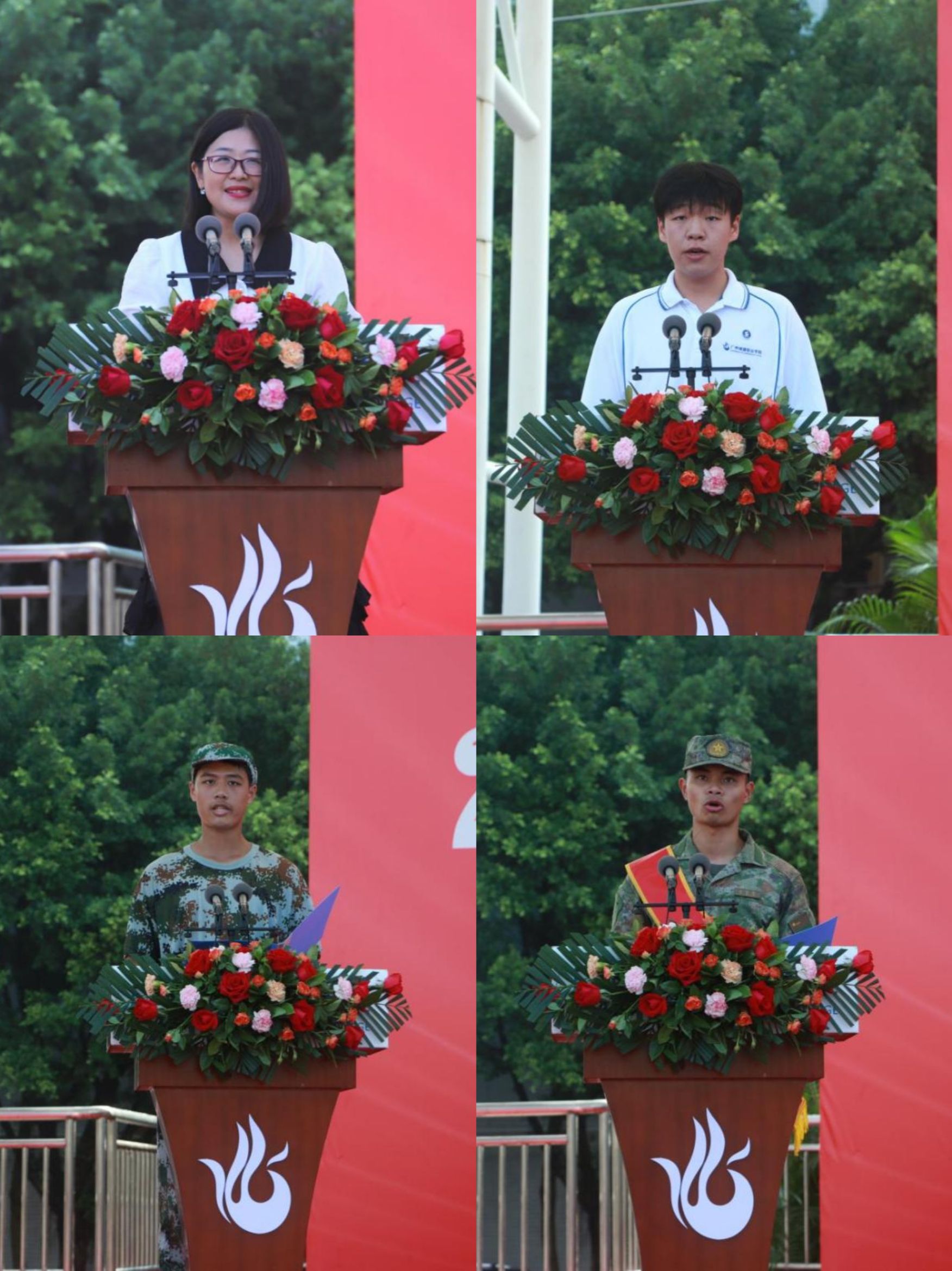 教師代表、經(jīng)濟(jì)與管理學(xué)院汪德露老師, 學(xué)長代表、2023年全國職業(yè)院校技能大賽“水利工程BIM建模與應(yīng)用”一等獎(jiǎng)獲獎(jiǎng)?wù)?、建筑工程學(xué)院陳燦喜同學(xué), 退伍復(fù)學(xué)士兵代表、信息工程學(xué)院李景超同學(xué),新生代表、機(jī)電工程學(xué)院林家豪同學(xué)分別作了發(fā)言。