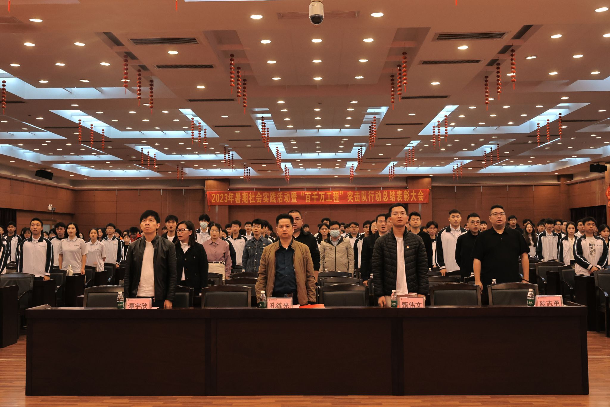 11月21日下午,2023年暑期社會實踐活動暨“百千萬工程”突擊隊行動總結表彰大會在人文藝術樓四樓報告廳召開。校長助理孔練光,團委書記甄偉文,學生處副處長譚宇欣,各二級學院黨委書記(副書記)、團委(團總支)書記、團學指導老師,校團委全體成員以及獲獎師生共同出席本次大會。