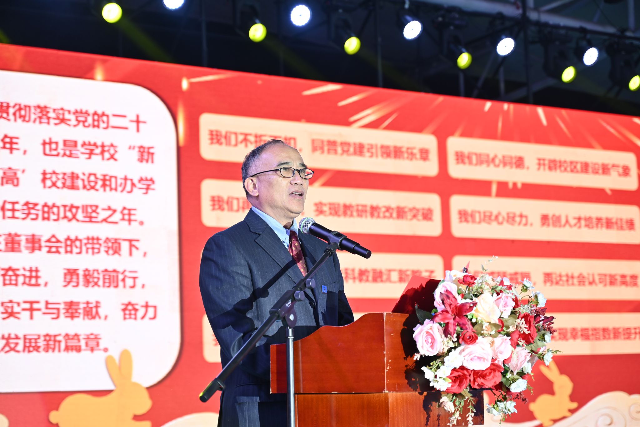 他強調(diào),學校將繼續(xù)把握穩(wěn)中求進的總基調(diào),以進促穩(wěn),爬坡過坎,創(chuàng)造出無悔于時代的新業(yè)績,迎來更加美好燦爛的明天。最后,他祝愿偉大的祖國繁榮昌盛!祝福學校事業(yè)蒸蒸日上、再譜新章!祝愿同學們、老師們、校友們、朋友們闔家幸福、歲喜安康、新年快樂!