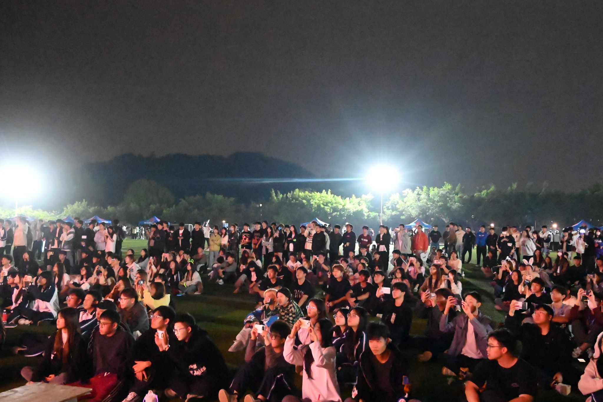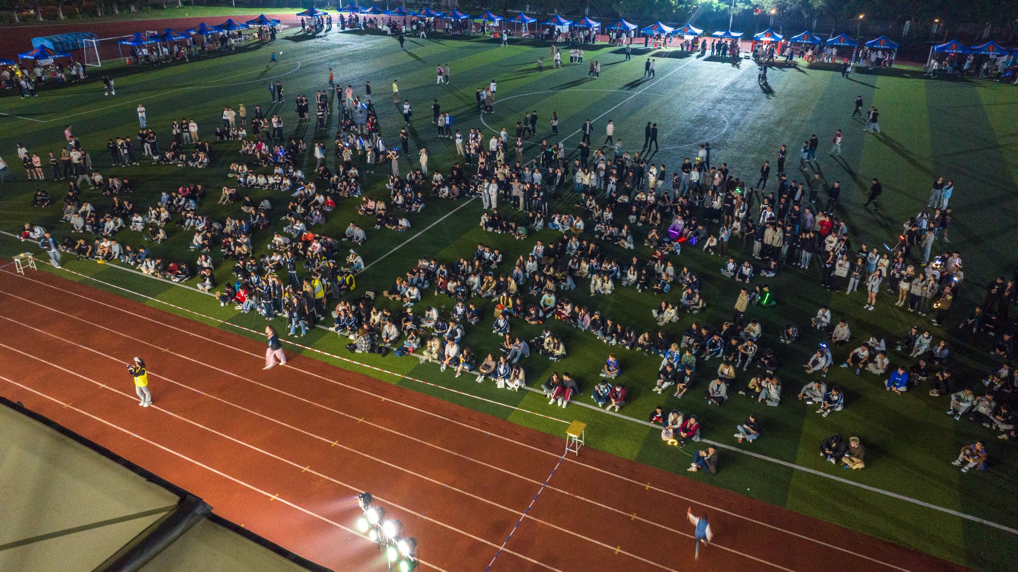 夜幕降臨,華燈初上,城建師生們身披熒光環(huán)、頭飾等配飾,走出宿舍、走下網(wǎng)絡(luò)、走向操場(chǎng)。