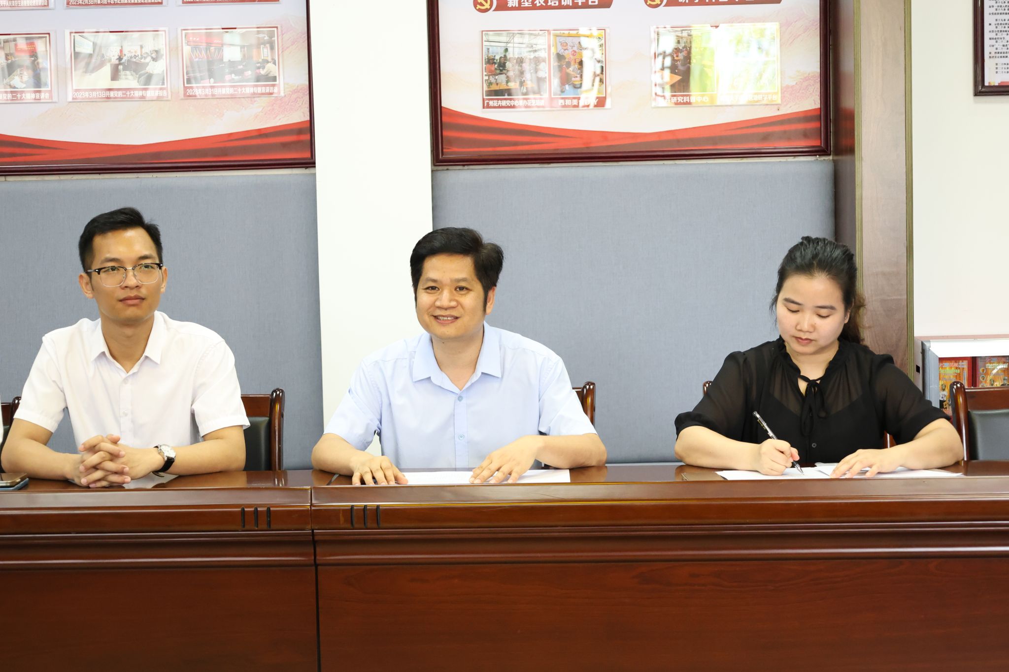 孔練光對城郊街相關領導為我校青年學生提供助力“百千萬工程”高質量發(fā)展平臺表示感謝,他簡要介紹了學校的基本情況,并希望雙方本著互相協(xié)作、各施所長、互補所需、共同發(fā)展的原則,推動高校的知識、技術、人才等優(yōu)勢同鄉(xiāng)村振興深度融合;希望學校各突擊隊能結合工作站的優(yōu)勢,堅持以村鎮(zhèn)需求為導向,為從化高質量建設綠色發(fā)展示范區(qū)貢獻青春力量。