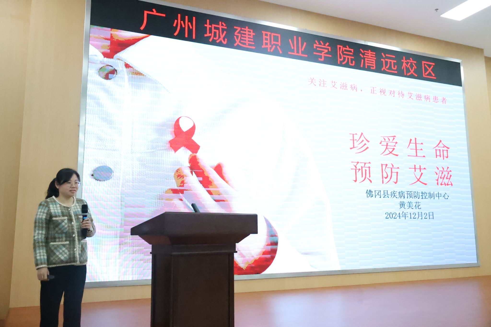 12月2日,由佛岡縣公共衛(wèi)生與重大疾病防治工作領(lǐng)導(dǎo)小組艾滋病防治專項(xiàng)小組主辦,我校承辦的“社會(huì)共治,終結(jié)艾滋,共享健康”系列宣傳活動(dòng)在我校清遠(yuǎn)校區(qū)舉行。佛岡縣衛(wèi)健局局長(zhǎng)歐陽熾榮、副局長(zhǎng)李欣欣,縣紅十字會(huì)常務(wù)副會(huì)長(zhǎng)廖監(jiān)軍,縣疾控中心主任周紅林、副主任劉東妹,學(xué)校副校長(zhǎng)楊清國等領(lǐng)導(dǎo)出席宣講會(huì)現(xiàn)場(chǎng)。