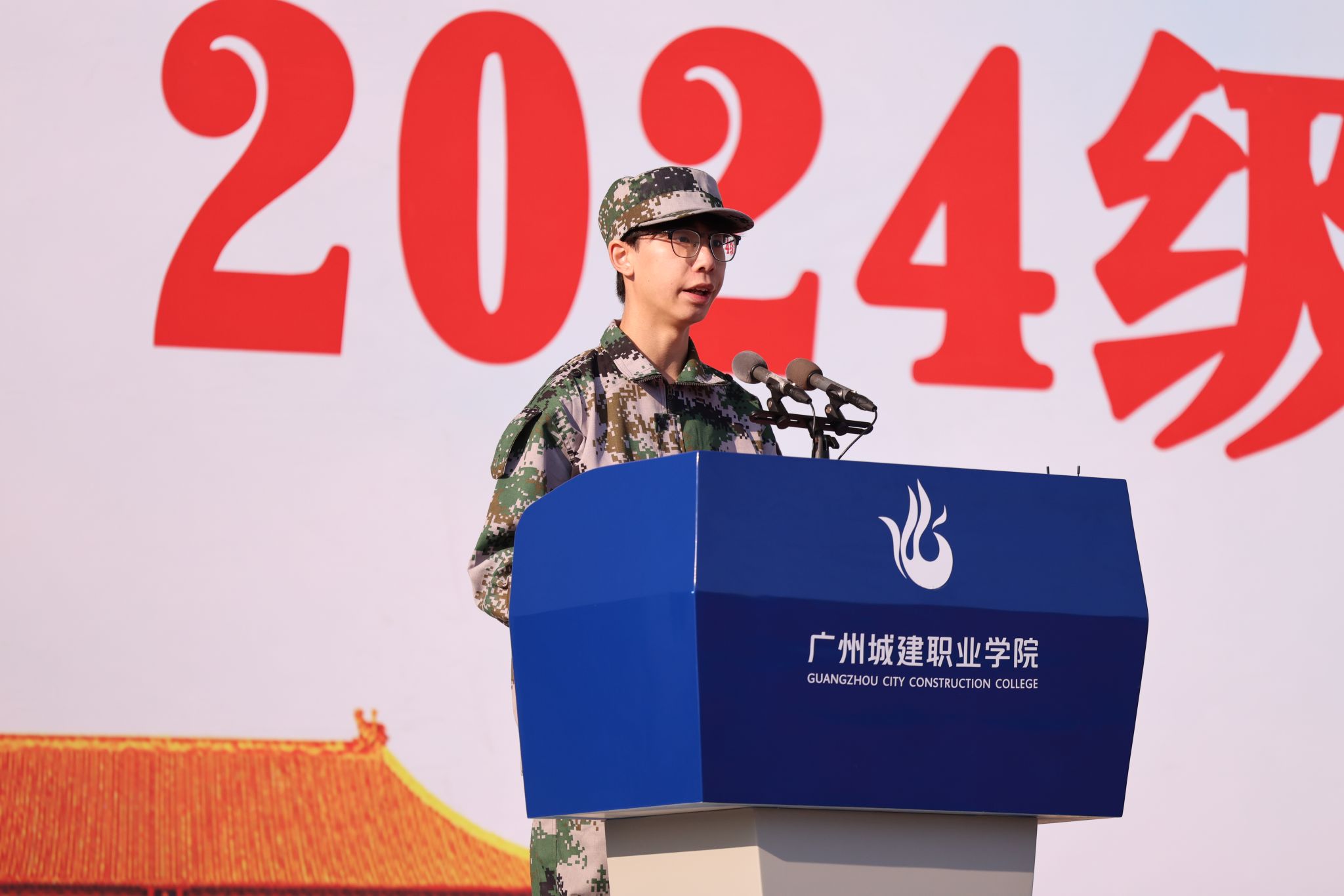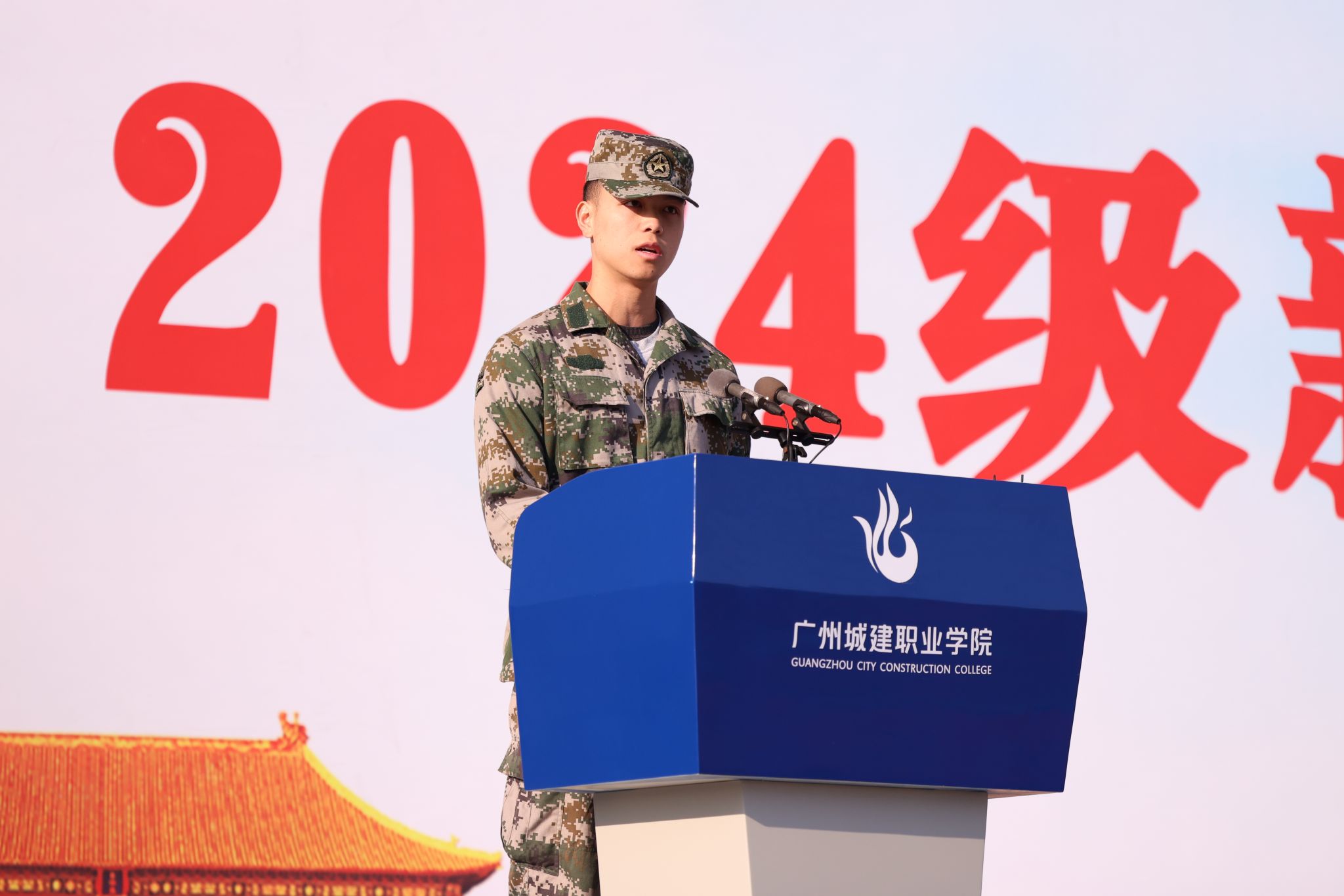 軌道交通學(xué)院梁景亮同學(xué)作為新生代表發(fā)言。他代表全體新生承諾,將以最飽滿的熱情和最堅(jiān)定的意志,全身心地投入到軍訓(xùn)中,在訓(xùn)練中嚴(yán)格要求自己,不畏懼任何一次挑戰(zhàn),肩并肩,心連心,克服困難,共同成長(zhǎng)。