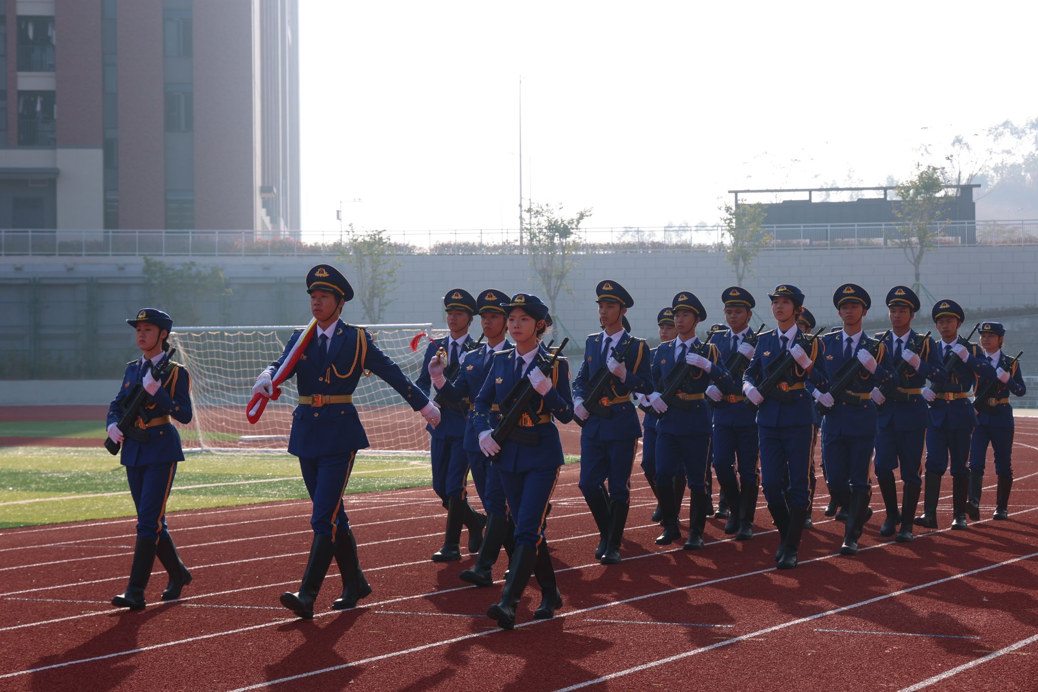 大會(huì)伊始,國(guó)旗護(hù)衛(wèi)隊(duì)成員身著統(tǒng)一制服,步履堅(jiān)定有力,護(hù)送著鮮艷的五星紅旗走向升旗臺(tái)。伴隨著雄壯的國(guó)歌聲,五星紅旗在晨曦中徐徐升起。
