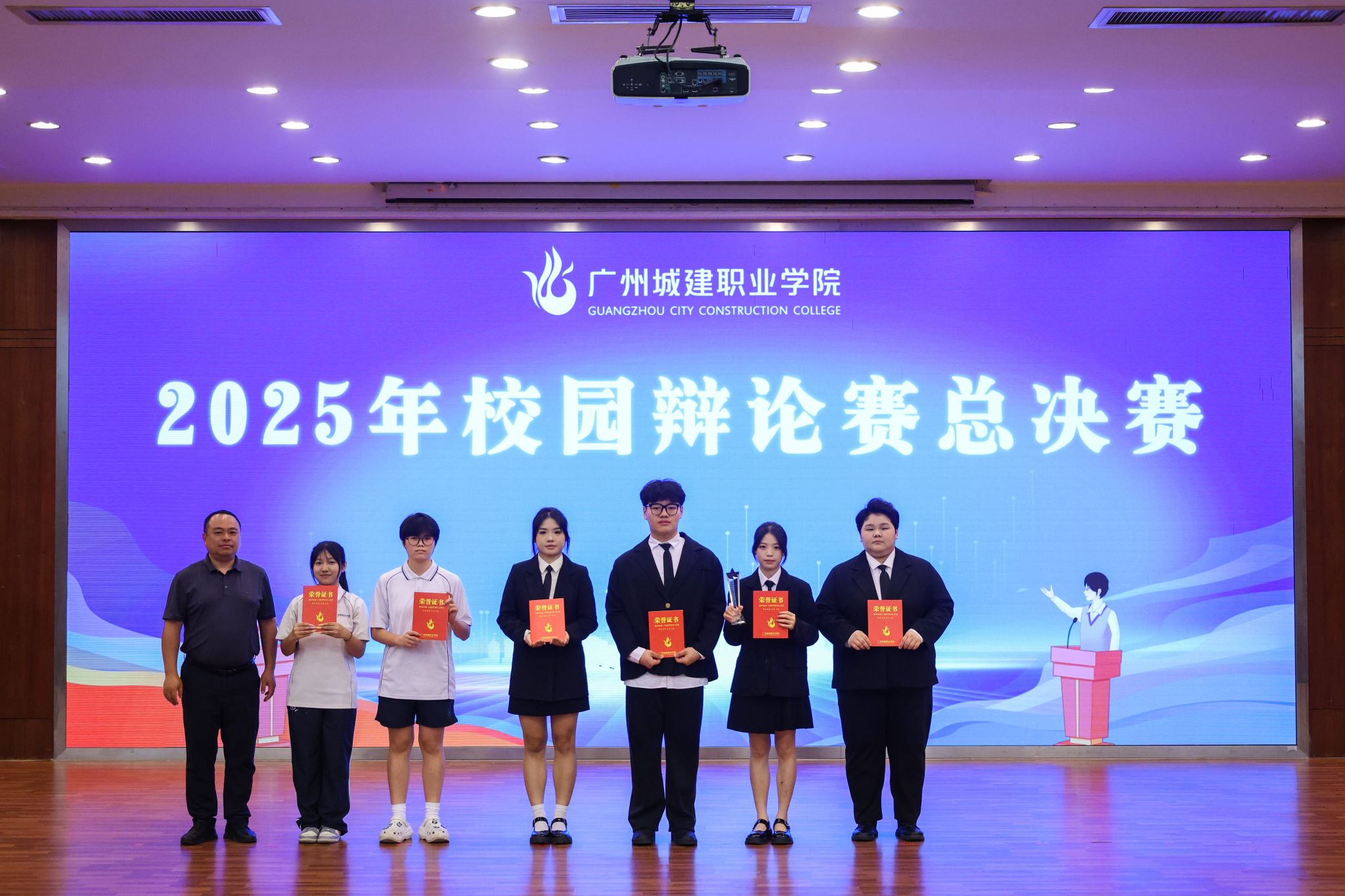 最后,經(jīng)濟(jì)與管理學(xué)院代表隊(duì)榮獲辯論賽冠軍,建筑工程學(xué)院代表隊(duì)榮獲亞軍,機(jī)電工程學(xué)院代表隊(duì)和藝術(shù)與設(shè)計(jì)學(xué)院代表隊(duì)榮獲季軍,經(jīng)濟(jì)與管理學(xué)院李婕同學(xué)榮獲“最佳辯手”稱(chēng)號(hào)。與會(huì)領(lǐng)導(dǎo)為獲獎(jiǎng)團(tuán)隊(duì)和個(gè)人頒獎(jiǎng)。