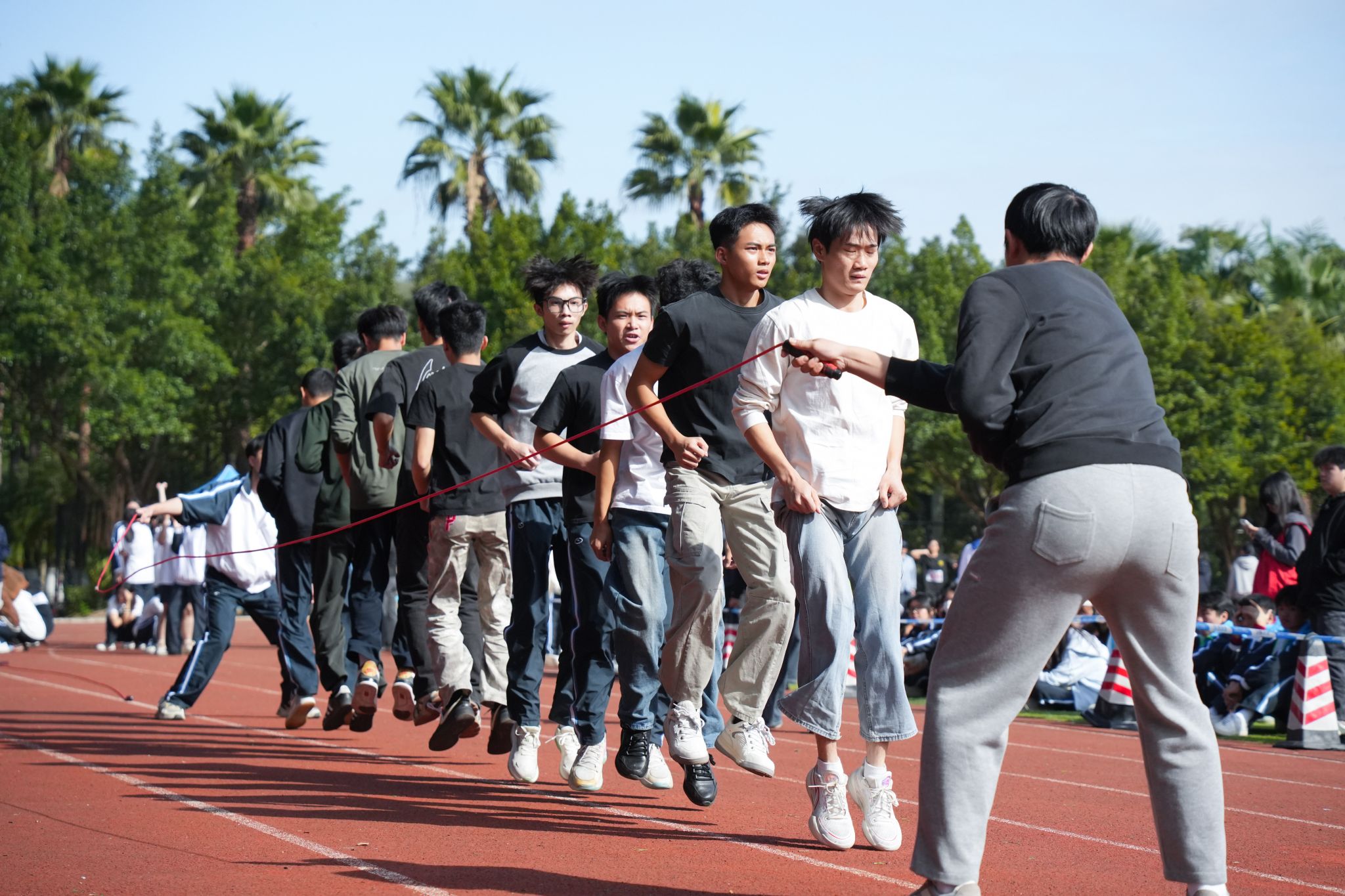 學(xué)生組賽事充分展現(xiàn)青春風(fēng)采。田徑賽場(chǎng)上,運(yùn)動(dòng)員在奔跑、跳躍、投擲中揮灑汗水,展現(xiàn)速度、力量與技巧;集體項(xiàng)目中,拔河、旱地龍舟、跳大繩等趣味賽事既緊張激烈又充滿歡笑,有效增強(qiáng)了團(tuán)隊(duì)凝聚力,讓體育競(jìng)技煥發(fā)獨(dú)特魅力。其中,經(jīng)濟(jì)與管理學(xué)院黎慧雯同學(xué)以9.56米的成績(jī)一舉打破了我校運(yùn)動(dòng)會(huì)女子三級(jí)跳賽項(xiàng)紀(jì)錄,獲得廣州校區(qū)本次運(yùn)動(dòng)會(huì)女子三級(jí)跳賽項(xiàng)第一名;機(jī)電工程學(xué)院李同衡同學(xué)分別以2分6秒、4分16秒的成績(jī)獲得廣州校區(qū)本次運(yùn)動(dòng)會(huì)男子800米跑、1500米跑賽項(xiàng)第一名。