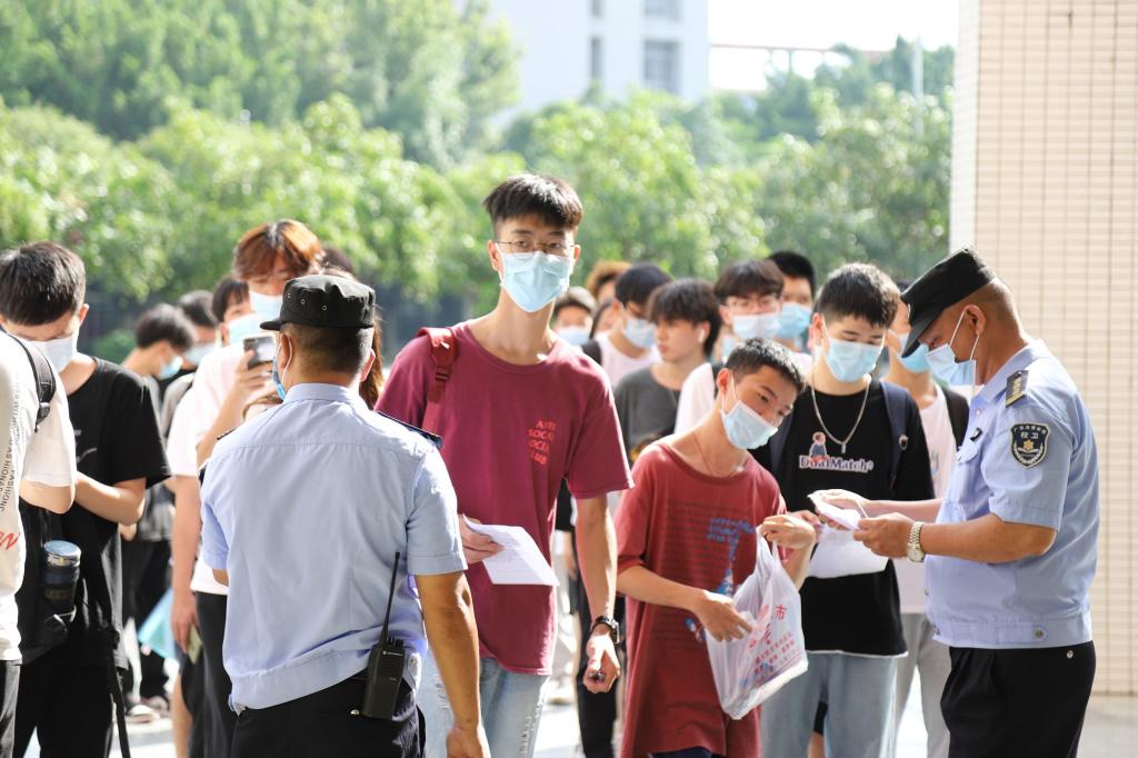 考生排隊(duì)進(jìn)入考場(chǎng)