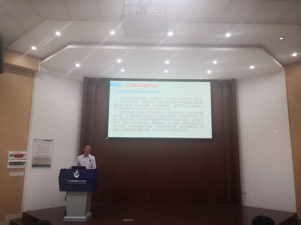 學(xué)校邀請(qǐng)了中國(guó)水利職業(yè)教育集團(tuán)秘書長(zhǎng)、廣東水利電力職業(yè)技術(shù)學(xué)院蔣伯杰教授作了“教學(xué)成果獎(jiǎng)選題和申報(bào)”的專題報(bào)告。蔣伯杰教授從什么是成果獎(jiǎng)、如何選題、如何培育和填寫申報(bào)材料等四個(gè)方面,闡述了教育教學(xué)改革的時(shí)代內(nèi)涵和現(xiàn)實(shí)意義,結(jié)合案例和評(píng)審指標(biāo)講授了教學(xué)成果的要素和特點(diǎn)、申報(bào)材料的撰寫和支撐材料的選用。報(bào)告主題鮮明、重點(diǎn)突出、內(nèi)容豐富,具有很強(qiáng)的指導(dǎo)性、針對(duì)性和可操作性,對(duì)我校教師如何做好教學(xué)成果獎(jiǎng)的凝練和申報(bào)進(jìn)行了深刻有效的指導(dǎo)。