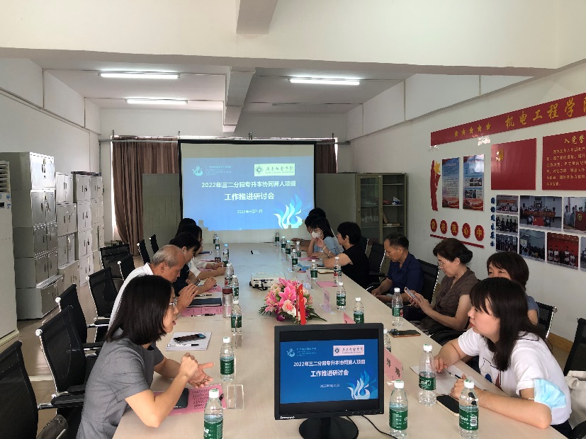 9月21日, 我校在建工機電樓101室舉行2022年三二分段專升本協(xié)同育人項目新生入學教育暨項目推進工作研討會。廣東白云學院教務處副處長馬迎春、建筑工程學院院長郭保生、機電工程學院院長曹玉華等一行8人蒞臨我校參加會議,出席會議的還有我校教務處副處長唐玉群、建筑工程學院院長吳承霞、機電工程學院院長周立求及教學副院長、相關專業(yè)部門負責人和三二分段專升本協(xié)同育人項目新生等。