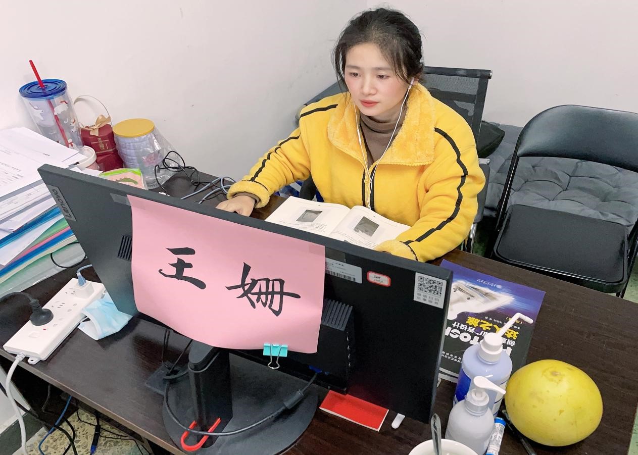 人文學(xué)院王姍老師在辦公室進(jìn)行線上授課