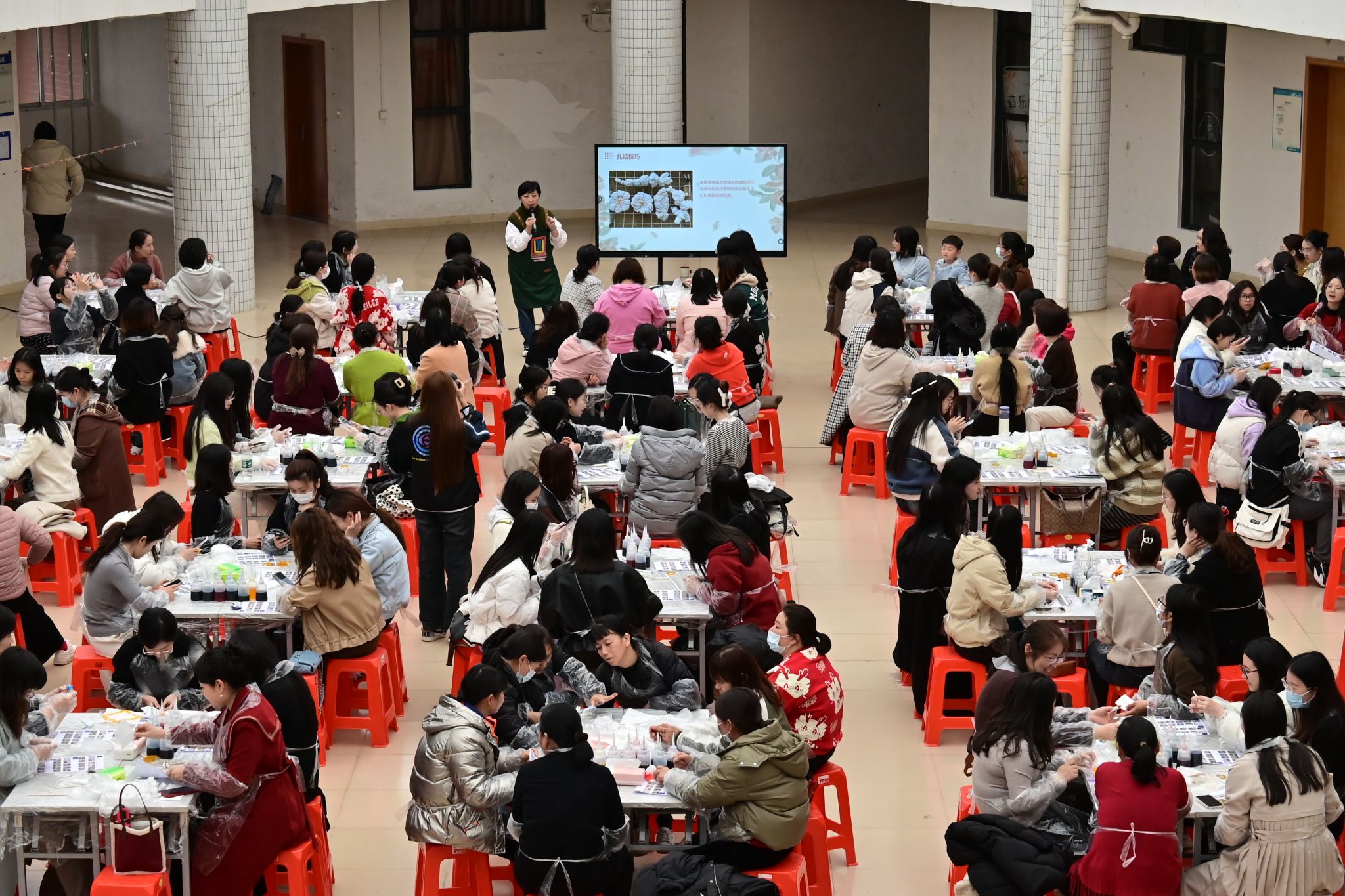 人間最美三月天,春花爛漫展新顏。為慶祝第114個“三八”國際勞動婦女節(jié),3月7日下午,我校在二區(qū)師生活動中心開展“袋”上生花——帆布手袋扎染DIY活動,現(xiàn)場邀請了專業(yè)扎染老師進(jìn)行實(shí)踐教學(xué),300余名女教職工現(xiàn)場體驗了親手扎染帆布袋的樂趣。學(xué)校工會副主席吳輝軍代表學(xué)校工會,向全體女教職工送上節(jié)日的祝福。