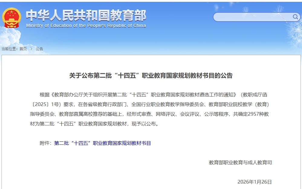 我校3種教材入選第二批“十四五”職業(yè)教育國(guó)家規(guī)劃教材