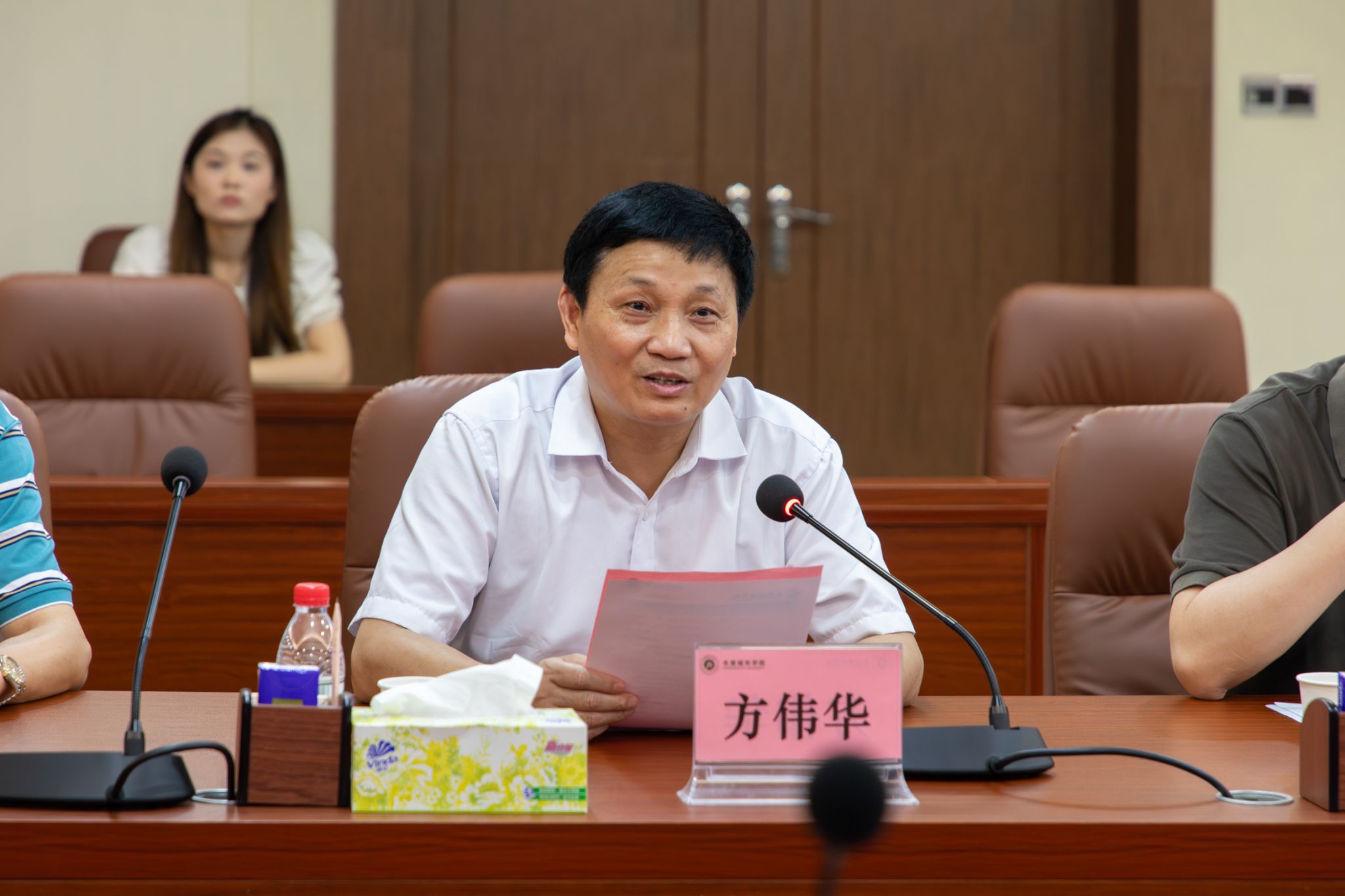 東莞城市學(xué)院常務(wù)副校長方偉華介紹該校情況,重點介紹了廣東省社會科學(xué)研究基地的建設(shè)情況、階段成果和未來規(guī)劃等。隨后,副校長康賢剛就嶺南文化數(shù)字化研究中心的“基本情況-成長歷程”“運營模式-組織架構(gòu)”“社會服務(wù)-助力嶺南村鎮(zhèn)創(chuàng)新發(fā)展”進行詳細介紹;科研部部長賴忠孝介紹了該校大學(xué)與城市融合發(fā)展研究中心建設(shè)的相關(guān)情況。