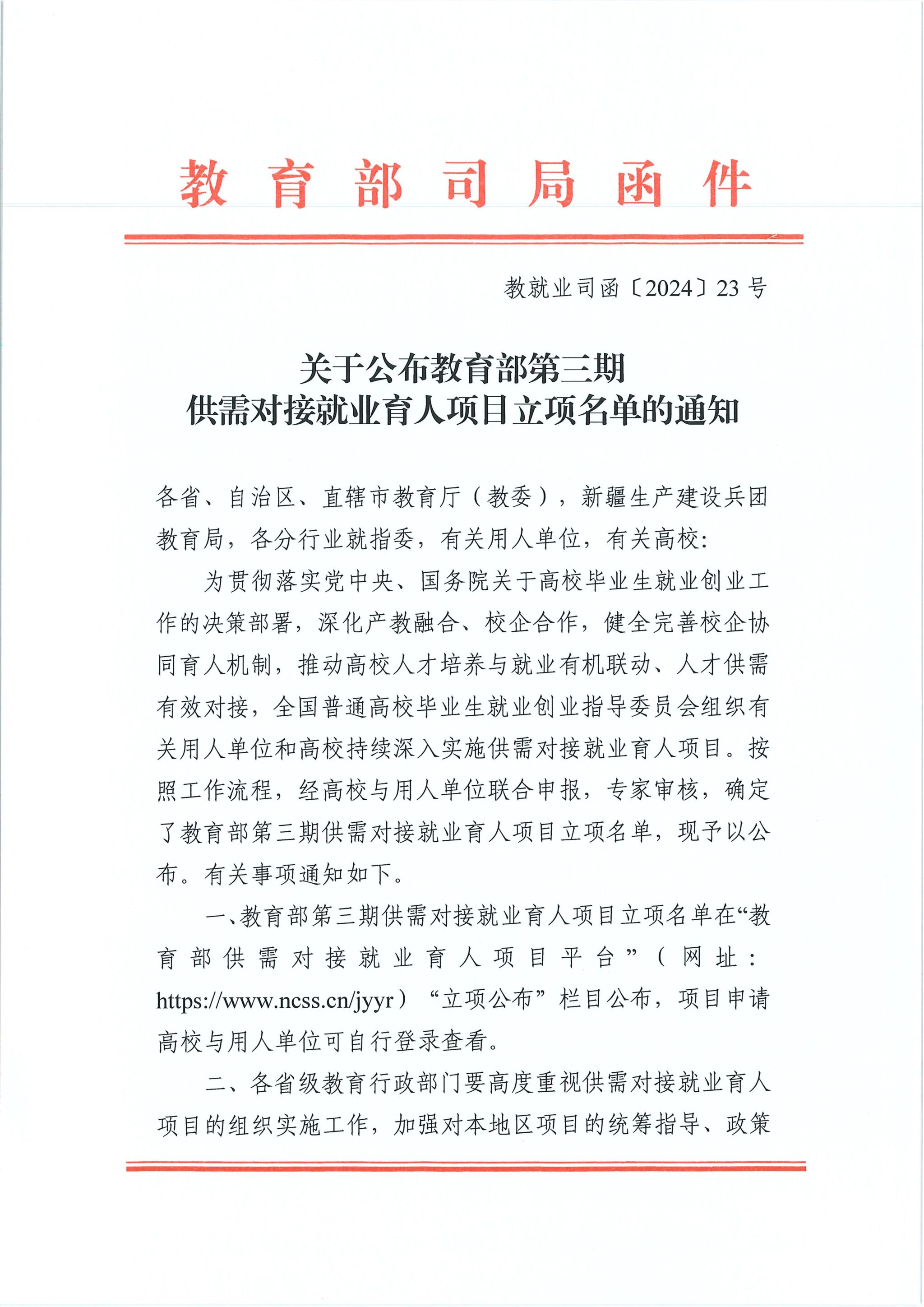 據(jù)《關(guān)于公布教育部第三期供需對(duì)接就業(yè)育人項(xiàng)目立項(xiàng)名單的通知》(教就業(yè)司函〔2024〕23號(hào))獲悉,我校與阿里巴巴(中國)網(wǎng)絡(luò)技有限公司、北京中科特瑞科技有限公司、美的集團(tuán)股份有限公司、廣州南方測(cè)繪科技股份有限公司等21家用人單位對(duì)接申報(bào)的27個(gè)供需對(duì)接就業(yè)育人項(xiàng)目獲教育部批準(zhǔn)立項(xiàng)。