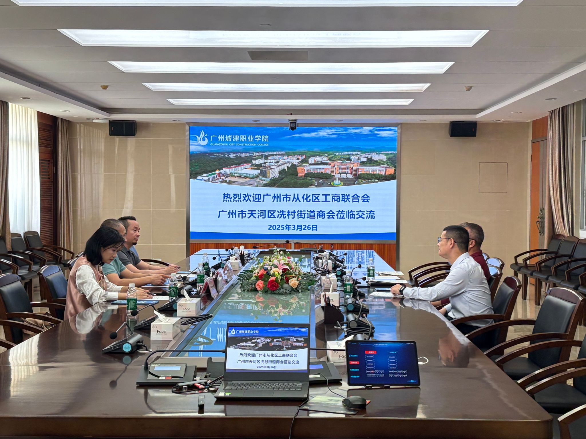 廣州市從化區(qū)工商聯(lián)聯(lián)合會、廣州市天河區(qū)冼村街道商會領(lǐng)導(dǎo)蒞臨學(xué)校交流