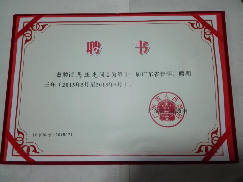 第十一屆省政府督學(xué)由于要求較高、涉及面廣,經(jīng)歷了近一年的層層遴選、嚴(yán)格審查和公示。馬亞光主任是廣東省民辦高職院校唯一入選的省政府督學(xué)。