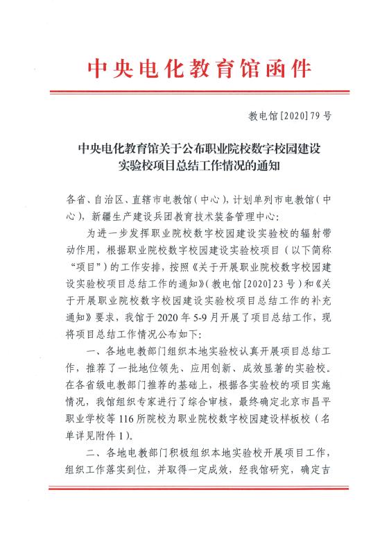 近日,中央電化教育館發(fā)出《全國職業(yè)院校數(shù)字校園建設(shè)實(shí)驗(yàn)校項(xiàng)目總結(jié)工作情況的通知》(教電館[2020]79號(hào)),我校入選“職業(yè)院校數(shù)字校園建設(shè)樣板?!薄?/p>