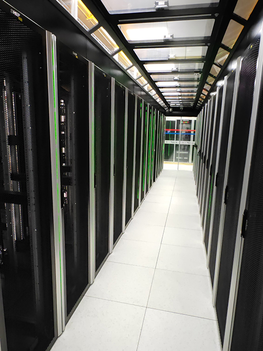 學(xué)校新中心機(jī)房建設(shè)水準(zhǔn)處于國(guó)內(nèi)同類高校領(lǐng)先地位。中心機(jī)房占地面積135平方米,配備模塊化機(jī)柜32個(gè),強(qiáng)力提升了我校數(shù)據(jù)中心機(jī)房的承載能力,能滿足我校未來(lái)10-15年數(shù)字化發(fā)展的空間需求。新機(jī)房按照綠色節(jié)能標(biāo)準(zhǔn)建設(shè),采用模塊化密閉機(jī)柜冷通道,實(shí)現(xiàn)冷熱氣流分離、風(fēng)冷行級(jí)變頻精密空調(diào)進(jìn)行近端制冷,從而提高空調(diào)的制冷效率。新機(jī)房能實(shí)時(shí)動(dòng)態(tài)監(jiān)測(cè)UPS電源、溫濕度、漏水、設(shè)備運(yùn)行狀態(tài)等信息,使數(shù)據(jù)中心運(yùn)行得更加安全穩(wěn)定可靠。