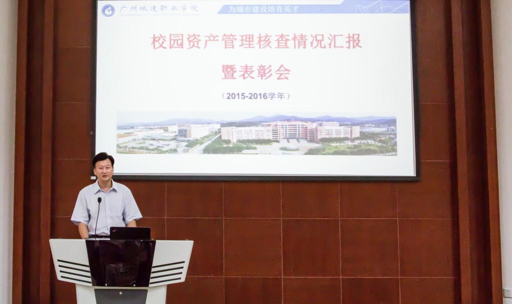 10月27日下午,校園資產(chǎn)管理委員會在建工機電樓A101報告廳召開2015-2016學(xué)年校園資產(chǎn)管理核查情況匯報暨表彰會。校園資產(chǎn)管理委員會張亞斌主任、楊清國副主任、苗紅衛(wèi)副主任、廣州城建職業(yè)學(xué)院劉國生校長、廣州城建技工學(xué)校葉忠校長及資管委委員、各單位負責(zé)人、資產(chǎn)管理員等約100人出席本次會議。會議由資管委委員吳銳主持。