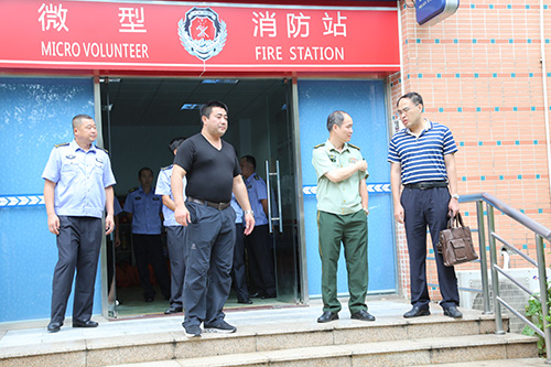 | 檢查組實地察看“微型消防站” |