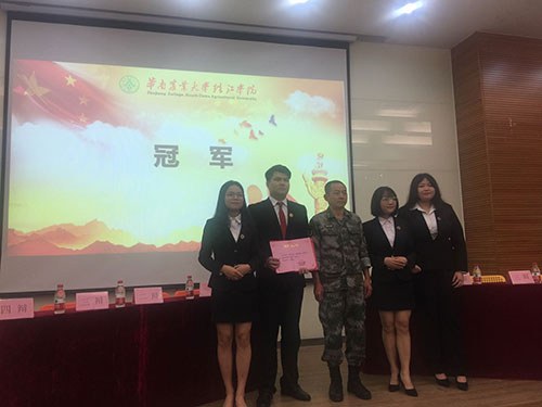 6月13日,我校學子參加由從化區(qū)武裝部主辦、華南農業(yè)大學珠江學院承辦的主題為“愛我國防、參軍報國”的從化區(qū)高校首屆“國防杯”辯論賽,一路過關斬將,問鼎比賽冠軍。出席辯論賽的有廣州市從化區(qū)人民武裝部政治委員王小平、廣州市從化區(qū)人民武裝部副部長黃志敏、華南農業(yè)大學珠江學院黨委書記陳林及從化各高校辯論隊指導老師、評委老師、學生代表。