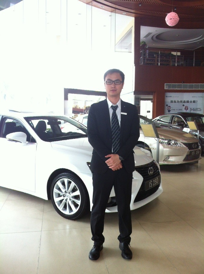 轉(zhuǎn)眼間,已畢業(yè)五年。還記得剛出來工作的時(shí)候,他時(shí)刻提醒自己是張白紙,一切從零開始,拿著半年500元月薪過艱苦生活,只為得到更多磨練機(jī)會(huì),職場如戰(zhàn)場,只有不斷自我強(qiáng)化,不斷摸索,才能有機(jī)會(huì)取得成功。最終,通過自己的努力拼搏,2012年奪得他公司內(nèi)部的全年度銷量冠軍、優(yōu)秀員工稱號(hào),2013年8月代表雷克薩斯中國分部去日本研修,之后,一直保持很好的業(yè)績,穩(wěn)步上升。