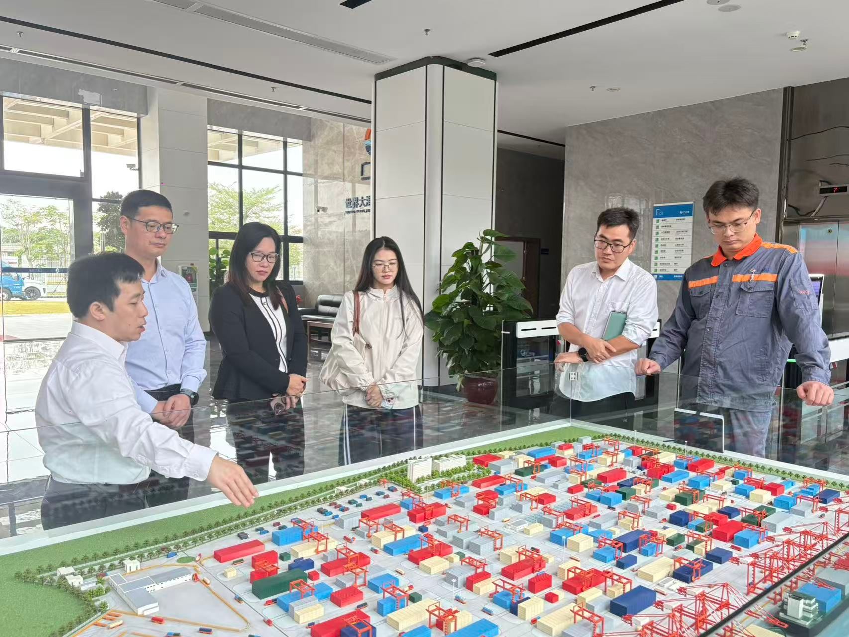 在廣州港集團(tuán)有限公司參觀調(diào)研過程中,潘福中處長一行參觀了企業(yè)展廳和智慧港口調(diào)度中心,深入了解港口運(yùn)營、多式聯(lián)運(yùn)、智慧物流及綠色低碳轉(zhuǎn)型等方面的創(chuàng)新實(shí)踐,人力資源部相關(guān)負(fù)責(zé)人系統(tǒng)介紹了企業(yè)發(fā)展歷程、業(yè)務(wù)板塊及人才引進(jìn)規(guī)劃。潘福中處長表示,通過對接港口智能化、綠色化轉(zhuǎn)型實(shí)踐經(jīng)驗(yàn),學(xué)校進(jìn)一步優(yōu)化數(shù)控類相關(guān)專業(yè)課程體系設(shè)置,提高學(xué)生在基礎(chǔ)設(shè)施建設(shè)和智能化操控方面的專業(yè)水平。